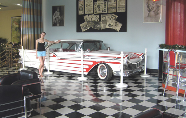 The hotel theme is cars of the 50s